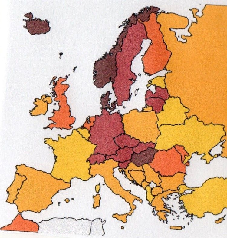 - Fig.10.2 viser at i 6 medlemslande er der mindst 90% der vurderer fordelene ved medlemskab positivt. Opregn landene og overvej om der er fælles træk ved dem. Er du overrasket over Danmarks placering? Prøv at give forklaringer på placeringen af nogle af de andre lande på kortet (landeforkortelser er angivet i materiale 1 nedenfor).